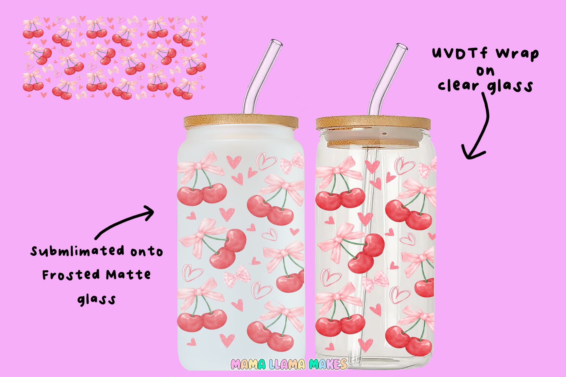Frosted sublimation glass — design is sublimated directly onto the cup for a smooth, no-peel finish.