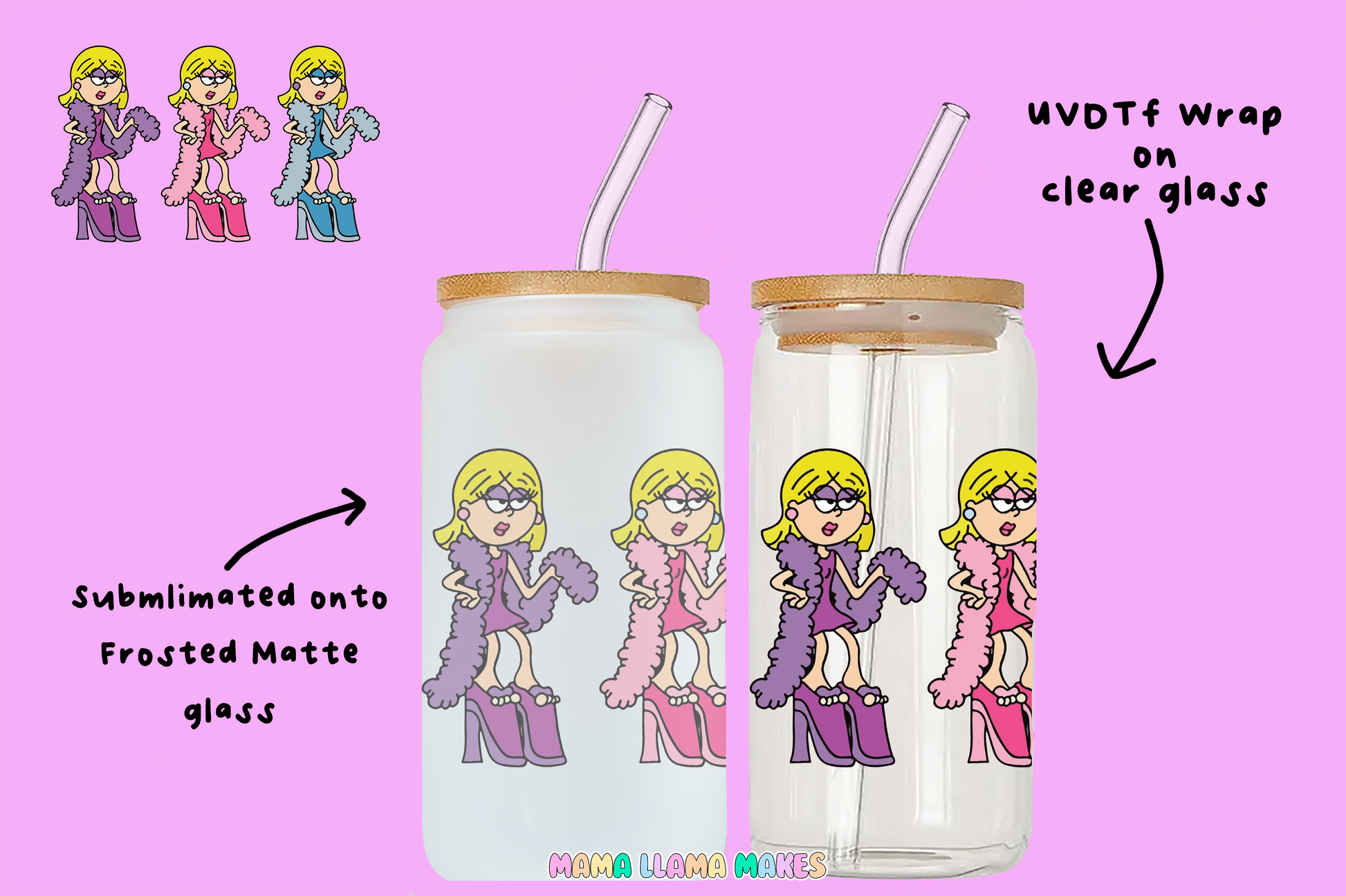 Frosted sublimation glass — design is sublimated directly onto the cup for a smooth, no-peel finish.